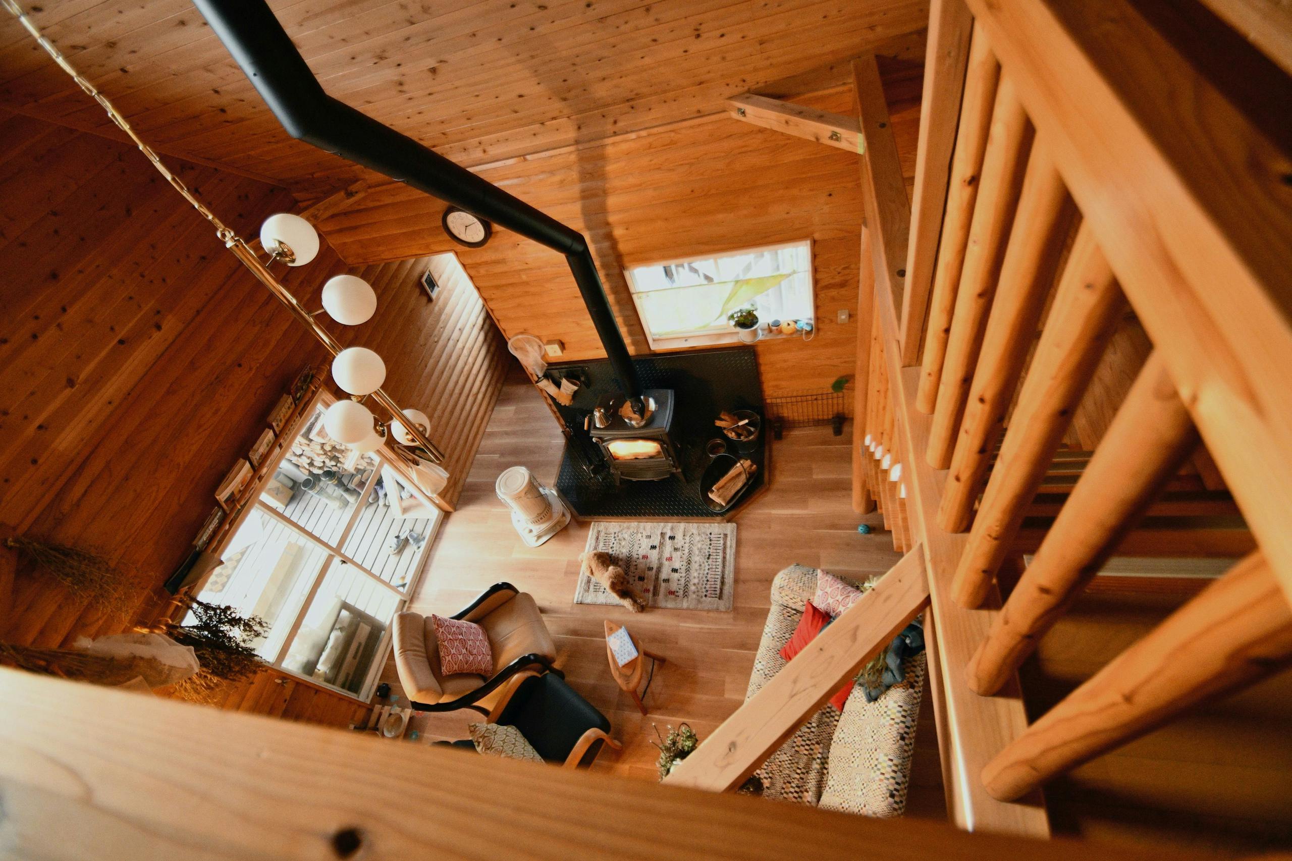 ログコテージは、北米から直輸入された資材で建てられた本格的なログハウスで、豪華で落ち着いた雰囲気が魅力です。キングサイズベッドやロフトもあり、広々とした空間で愛犬とゆったりと過ごせます。