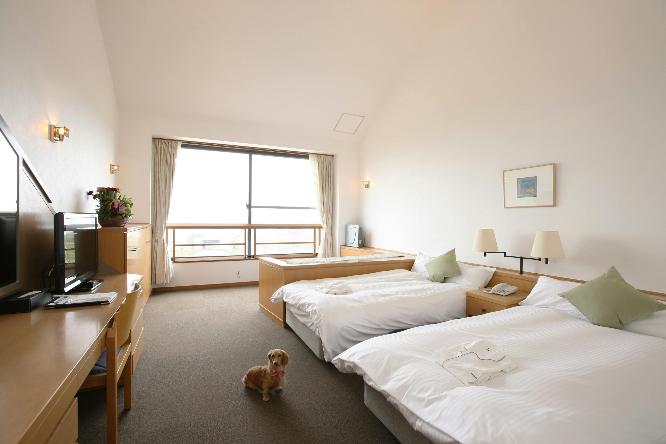ドッグフレンドリーな宿で、超大型犬まで一緒に泊まることが可能。愛犬にリードを付けていればフロントから客室まで一緒に歩いて行くこともできます。屋外には広さ3000平米のドッグランがあり愛犬と楽しく遊ぶことも。施設内にはシャンプー・トリミングルーム(有料)もあるので、たくさん遊んでも清潔感を保てますよ。