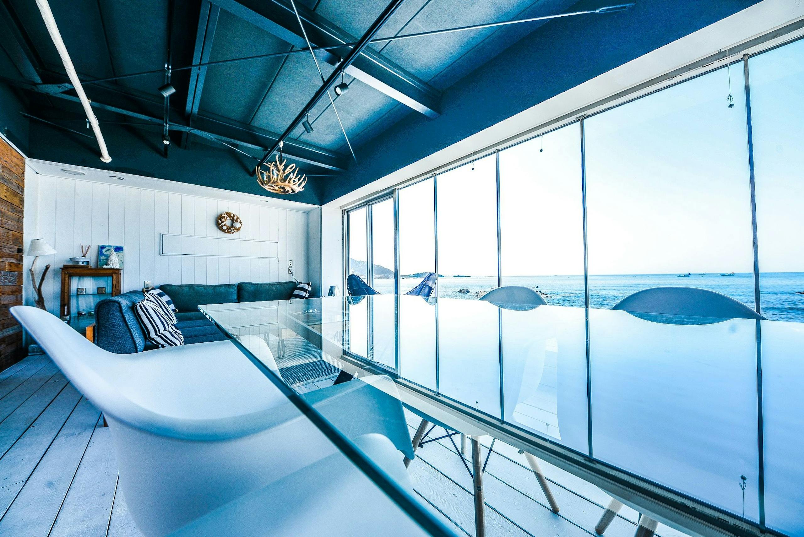 「Nowhere but Sajima」は、神奈川県横須賀市佐島にある全室オーシャンビューのデザイナーズ貸別荘です。最大5名まで宿泊可能で、ペットは2頭まで同伴できます。リビングには幅4.5m、高さ2.8mの大きな窓があり、富士山や江ノ島の絶景を楽しむことができます。天気が良い日には、海中の魚が見えることもあり、特にサンセットやダイヤモンド富士の時期は見逃せません。