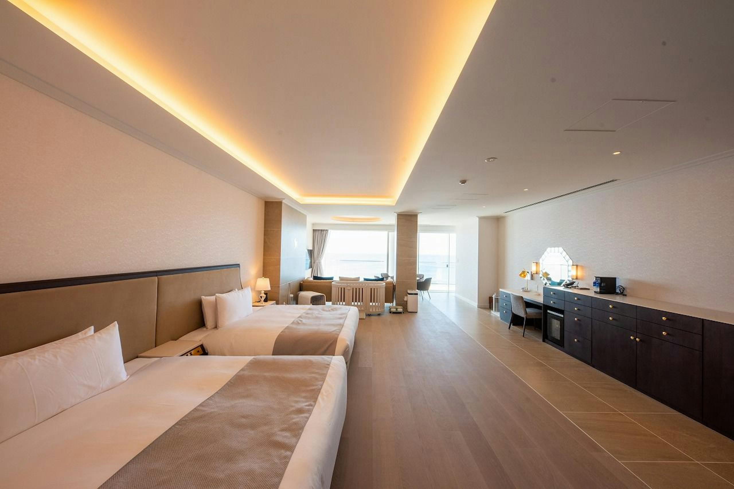 特に愛犬家にうれしいのが、新設されたドッグフレンドリールームです。小型犬2匹まで同伴可能で、愛犬用のバスルームやグルーミング台、専用クローゼットなどが備えられています。